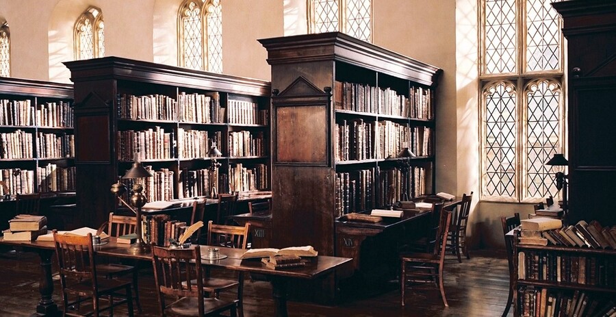 Еще одним значимым архитектурным источником для создания общественных пространств Хогвартса стала Бодлианская библиотека в Оксфорде. Ее темные деревянные стеллажи, готические окна и каменные своды задали визуальную модель, в которой знание преплетается с тайной, традицией и строгостью. Именно в этой библиотеке снимались сцены библиотеки Хогвартса, известной своими величественными интерьерами с высокими потолками и древними книгами. Это место стало символом академической строгости и глубины знаний, где юные волшебники готовились к экзаменам, что подчеркивает роль библиотеки как интеллектуального и мистического центра школы.