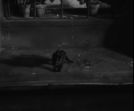 Сами преступления легко остаются незамеченными. Прекрасным примером служит сцена из фильма Жана Ренуара «Сука»: через внутрикадровый монтаж камера поднимается от улицы к неприметному окну, где цветы и рама вступают в борьбу за фокус с убийством, творящимся внутри, особенно когда женская голова композиционно свисает меж перил. Эта трагедия словно подсмотрена, сведена к обыденности за счет параллельных кадров с котенком и бытовой обстановки. Толпа, стоящая внизу, следит за уличным музыкантом и не замечает преступника, ускользающего от двери на заднем плане.