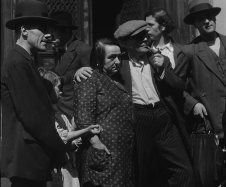 Толпа, сдавливающая персонажей и сталкивающая их с преступниками, как в фильме «Асфальт», сама кажется враждебной. Даже когда она встает на защиту закона, как в «Аталанте» в сцене кражи, ее склонность к самосуду и грубость вызывают у героини страх, удачно подпитываемый подвалившим бродягой. Все они для нее сливаются в единую городскую массу.
