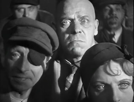 Немолодой кассир Морис Легран в гневе убивает проститутку Лулу, к которой питал страсть, и скрывается на социальном дне Парижа. Кадры из фильма «Сука» (реж. Жан Ренуар, 1931)