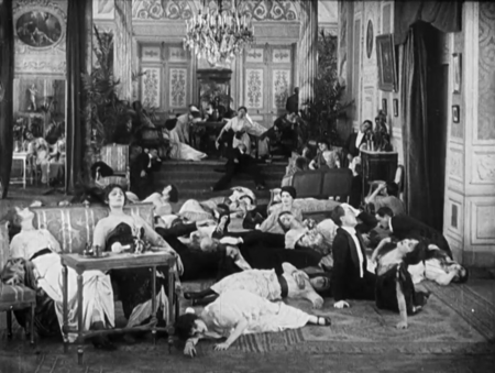 Обратная сторона грязного городского дна и обшарпанных зданий — парадный фасад, чья структура ориентирована на нужды зажиточного населения. Еще в работах Луи Фейада эти пространства становятся полноценным персонажем, обуславливая то, как герои в них движутся и взаимодействуют. В то же время роскошные интерьеры неизбежно привлекают преступников, как средоточие денег и праздности.