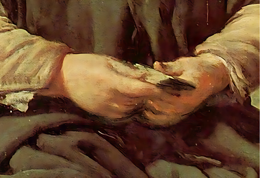 Веласкес совершает революцию в искусстве, представив карлика Себастьяна де Морру как личность невероятной внутренней силы. Художник отказывается от всяких унизительных атрибутов, помещая фигуру в тёмное замкнутое пространство, что заставляет зрителя смотреть ему прямо в глаза — взгляд полон вызова, достоинства и скрытой боли. Сжатые кулаки на ярких красных рукавах говорят о сдерживаемой энергии и протесте против своей участи. Это не просто портрет — это крик о том, что человеческое достоинство не зависит от физических недостатков или социального положения. Веласкес показывает, что под личиной шута может скрываться глубокая и сложная личность.