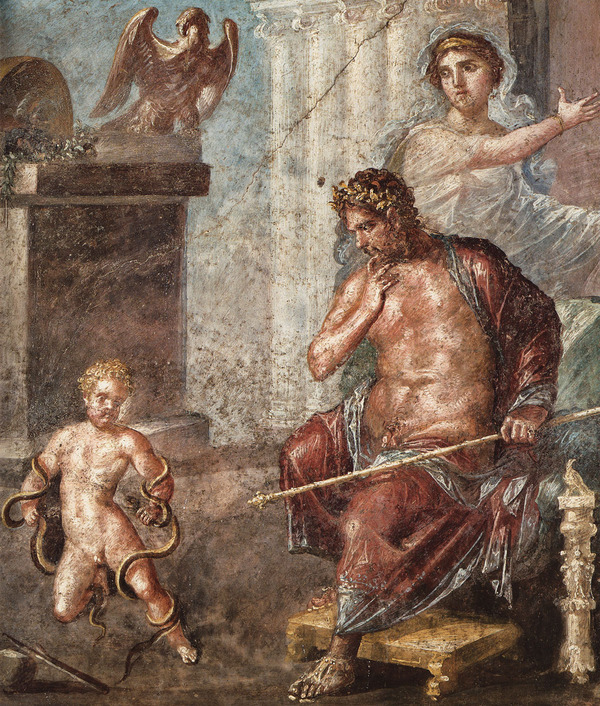 Фреска «Геркулес душит змей на глазах Амфитриона и Алкмены», Фрагмент. Помпеи. I век н. э.
