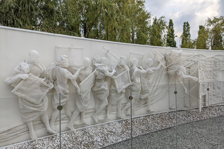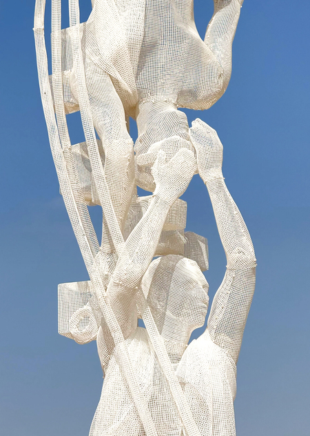 Серия, в которой переработанные материалы обретают почти религиозное измерение. Фигуры, выполненные из пластиковых сеток, напоминают цифровые рельефы, подвергшиеся эрозии.