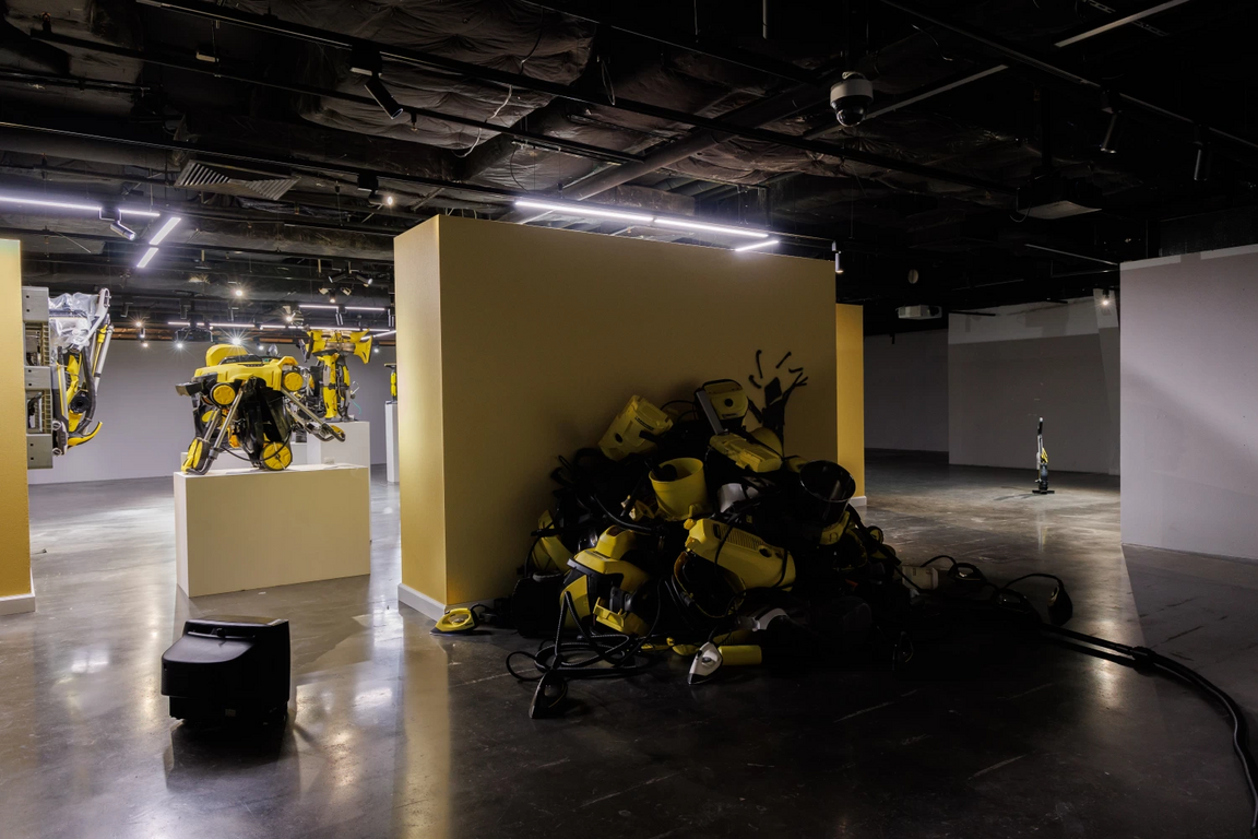 В работах студии переработанный пластик перестаёт быть просто вторичным сырьём. Он превращается в символ зависимости от технологий, в медийный шум, в структурную сетку, на которой держится современная культура. Именно поэтому их скульптуры часто выглядят как застывшие в воздухе глюки — обрывки тел, интерфейсов, икон, которые потеряли связь с источником.