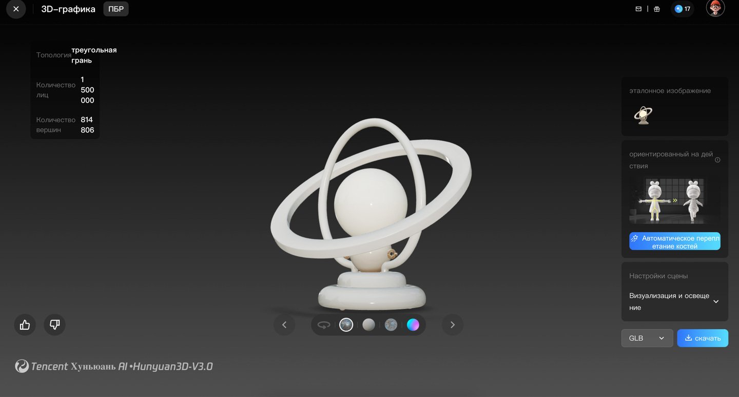 Промты и технические задания были разработаны с использованием ChatGPT. Визуальные изображения и эскизы были сгенерированы в Leonardo AI. 3D-модели объектов созданы с использованием генеративной системы Hunyuan (Tencent). Проверка геометрии и корректировка 3D-моделей выполнены с помощью MeshInspector и Formware.