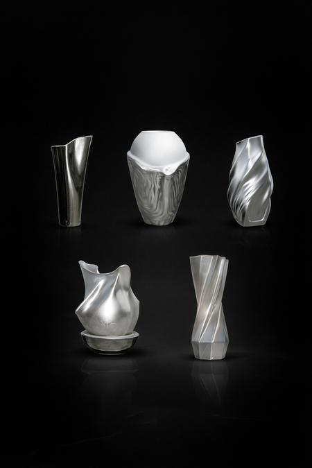 Идея проекта заключается в создании серии интерьерных ваз, вдохновлённых пластикой стекла, перламутра и металла. Они призваны стать выразительными декоративными акцентами в современном интерьере — сочетая элегантность, минимализм и утончённый характер.