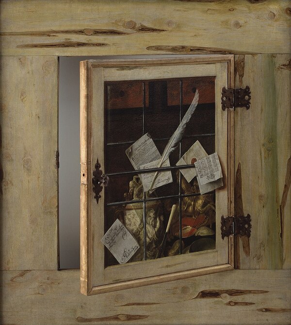 Хогстратен, С. ван (Hoogstraten, S. van). Натюрморт с обманкой: [изображение], 1664 / [Электронный ресурс] // Wikimedia Commons: [сайт]. — URL: https://upload.wikimedia.org/wikipedia/commons/6/69/Tromp-l%27oeil_Still-Life_1664_Hoogstraeten.jpg (дата обращения: 24.11.2025).