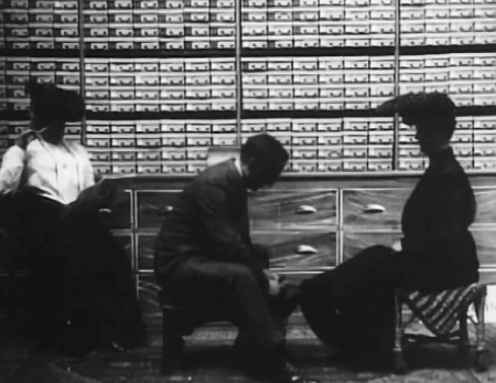 Кадр из фильма «Чистильщик обуви» («The Gay Shoe Clerk», реж. Э. Портер, 1903).
