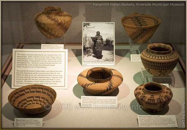 Справа: Различные инструменты племени Кумеяай (XVIII), Музей «Нас» Слева: Корзина для сбора зерна и семян племени Кумеяай (XVIII), Музей «Нас»