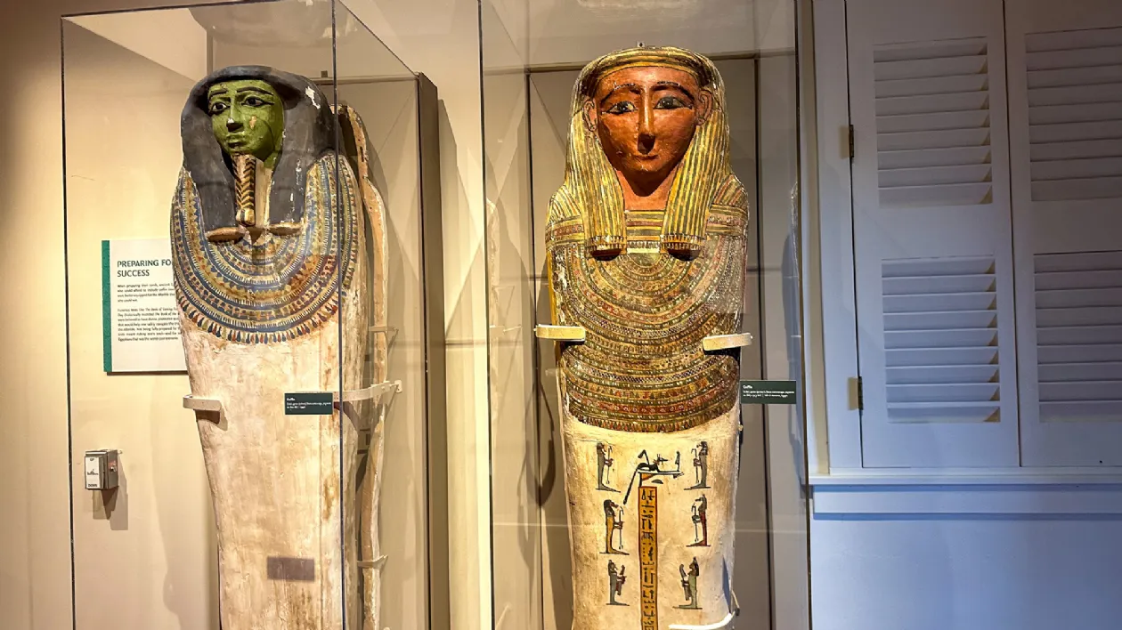 Слева: саркофаг Хора (VII–VI до н. э.), справа саркофаг Пади-мута (IV–I до н. э.), Музей «Нас» репрезентация (2020)
