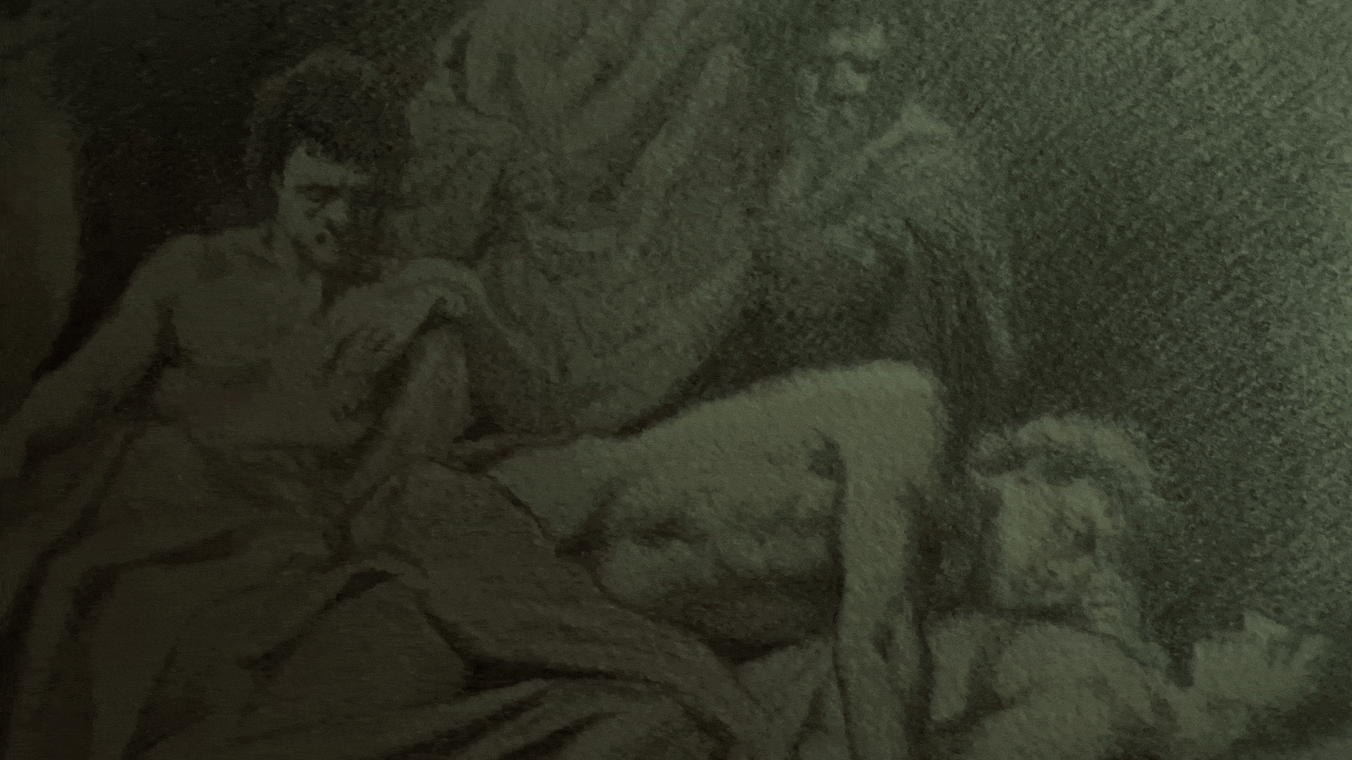 «Ганнибал» (2013-2015), реж. Брайан Фуллер / Ганнибал изображает Уилла и повторяет картину Николая Ге «Ахиллес оплакивает Патрокла» (1855)