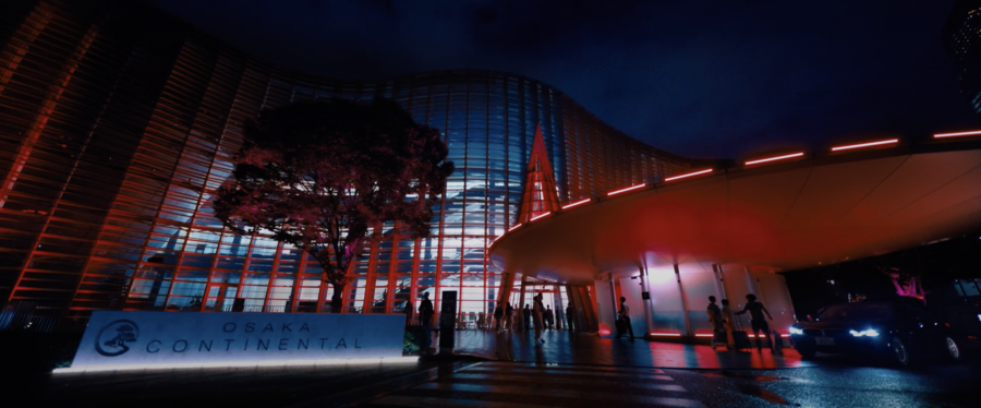 В Осаке интерьер меняется из-за другой культуры, но по атмосфере это всё ещё верхний слой, место законов. Однако в четвёртой части заметно, что мир Джона уже трещит, и даже верхний слой начинает визуально меняться. В отеле много неонового света и контрастных акцентов. Это пространство по настроению уже ближе к тем визуальным эффектам, которые появляются в слоях ниже. То есть он остаётся верхним уровнем, но чувствуется, что границы между слоями начинают размываться.