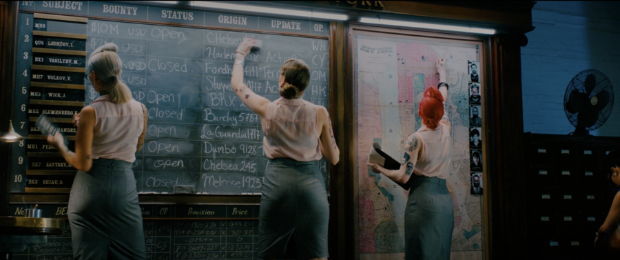 К среднему слою относятся пространства, где происходят «рабочие» процессы мира убийц: куда поступают звонки, где объявляют «excommunicado», где рассылают сведения о награде. Мне показалось важным, что именно эти места связывают верхний слой законов и порядка с нижним слоем полного разрушения. То есть наверху мы видим как все подчиняется правилам правления, внизу происходят сами убийства, а здесь — грань двух этих миров, сделанных в смешанном стиле и с приглушенным светом.