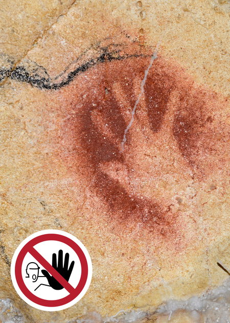 Изображение рук в эпоху палеолита носило скорее религиозный, а не практический характер. Более того, примечателен выбор цвета — красно-охровый. Люди уже тогда понимали, какие цвета больше привлекают внимание. Тем не менее, выбор цвета тогда не был настолько широк и определялся не желанием художника, а наличием какого-либо красителя.