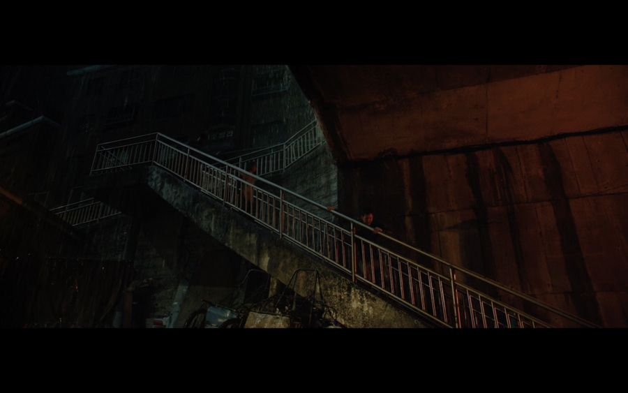 Пон Джун-хо часто противопоставляет беспорядочные сельские пространства городским и полицейским интерьерам, где порядок лишь иллюзорен. Кабинет полиции — захламлённое помещение, бумаги, шум, люди, которые мешают друг другу — визуальная метафора неэффективности и хаотичности следствия.