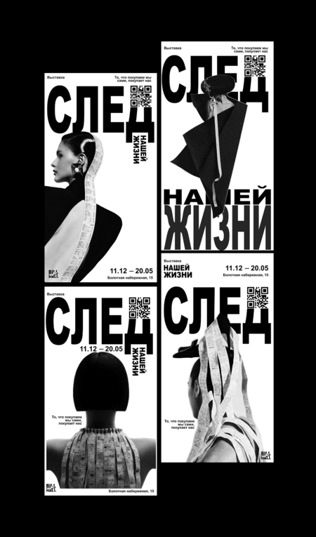 Серия «Люди в чеках» размещается на улицах города и в интернете, потому что город / интернет — это пространство людей и личных историй, показывая, как потребление формирует идентичность, буквально становится нашей второй кожей