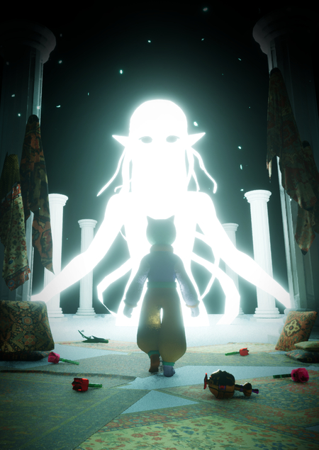 Прикоснувшись к статуе, вы откроете себе путь до ближайшей безделушки с помощью сил света.