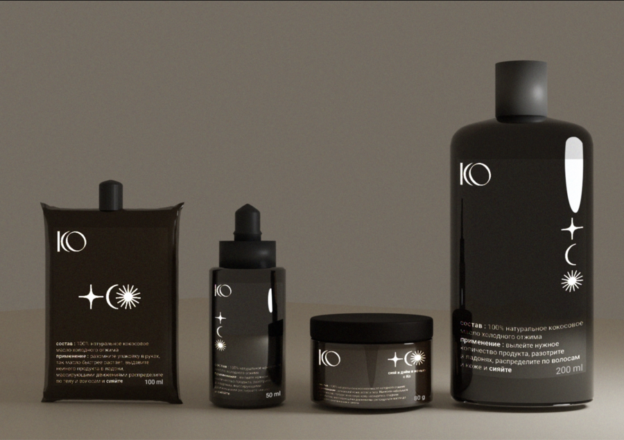 Исходный проект бренда кокосового масла «Ко», айдентика, продукт, дизайн упаковки