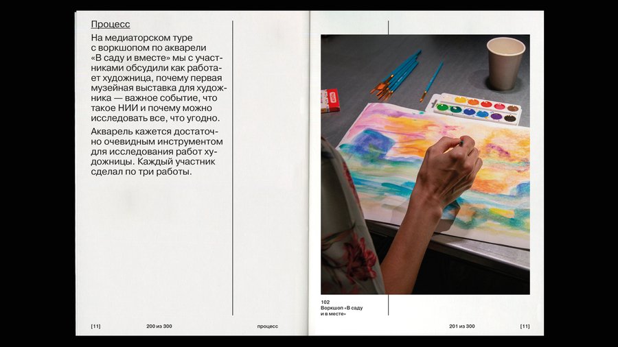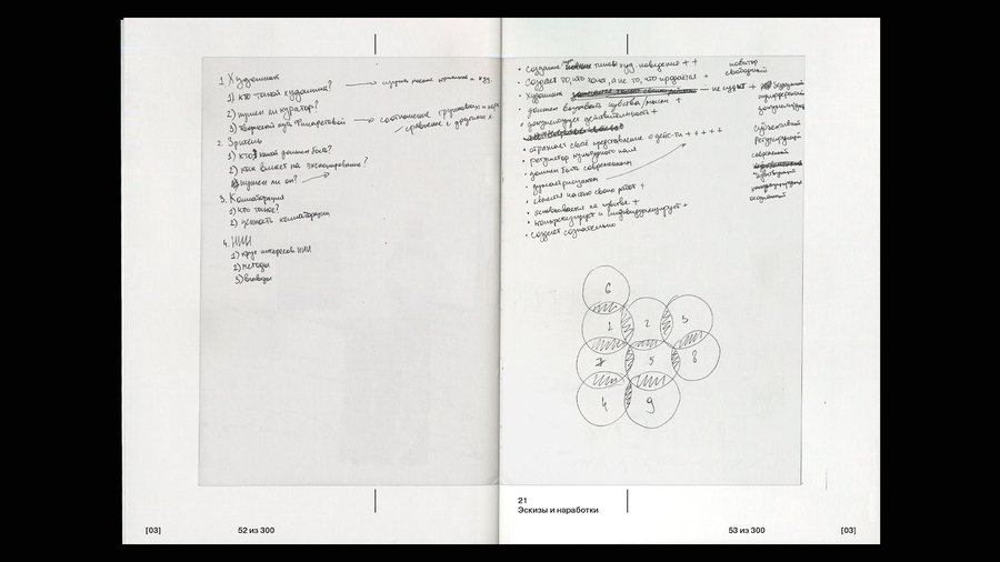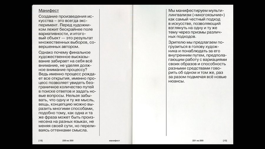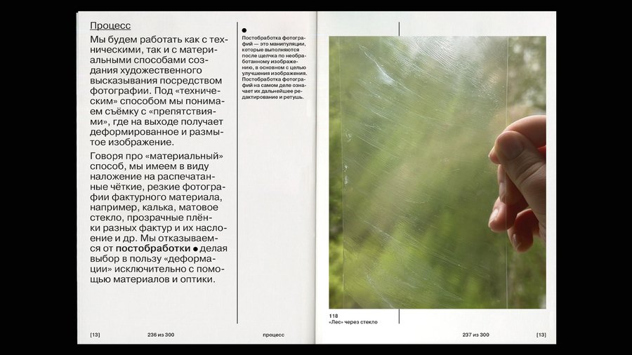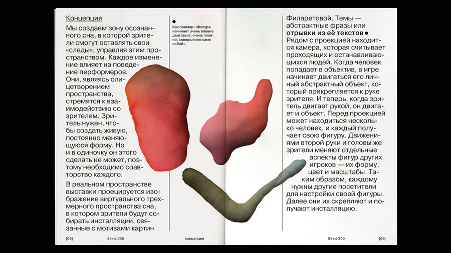 В каждом зине есть 3 обязательных раздела: концепция, процесс и взаимодействие. По желанию лаборанты могли добавлять и свои тексты: рецензии от кураторов, манифесты, инструкции или рассказ про развитие проекта после выставки