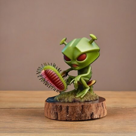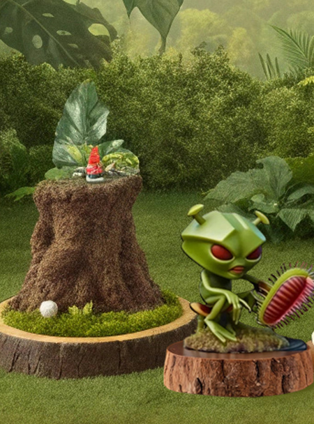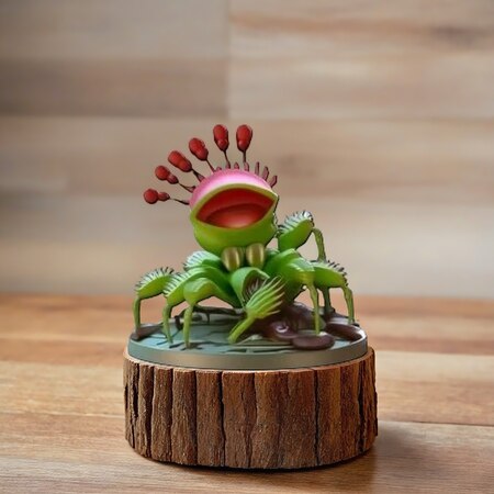 Craiyon: Промпт: Венерина мухоловка, коллекционная 3D фигурка, посвященная исчезающим видам растений, находящимся на грани исчезновения. Каждая фигурка должна представлять уникальное растение, его характеристики и историю, связанную с угрозами, с которыми оно сталкивается. U.Каждая фигурка должна быть качественной и детализированной, отражающей истинный внешний вид растения — его цвет, форму и текстуру. 3D