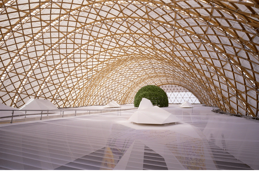 «Я хотел создать павильон, который выглядел бы примитивным и древним, что-то среднее между зданием и ландшафтом. Шиферные крыши встречаются по всему миру, это архетипическая форма», — говорит Исигами.