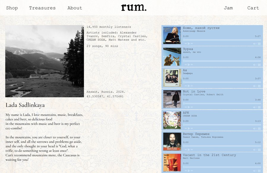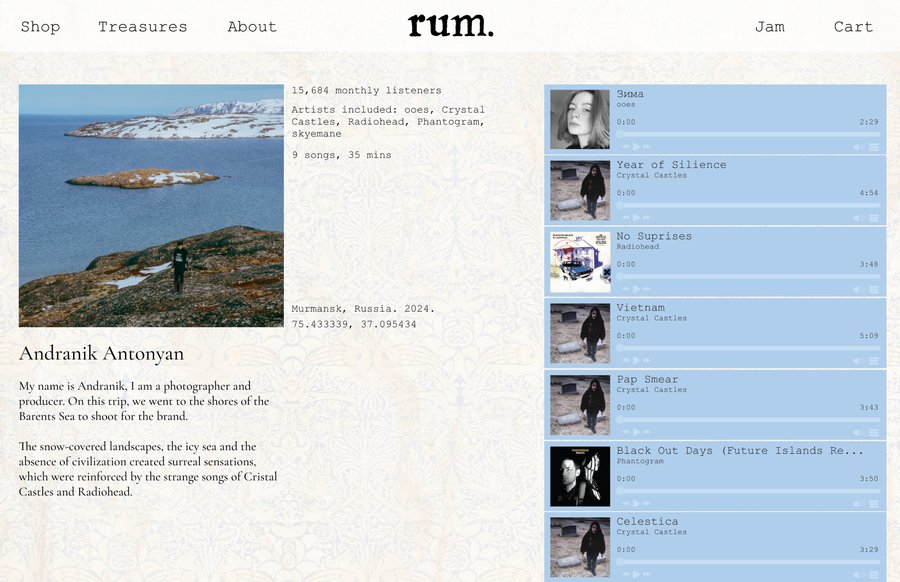rum. — проект, вдохновленный внутренними ощущениями от путешествий, смешивающими моду, искусство, музыку и архитектуру в единый образ в впечатлениях человека по возвращению домой.