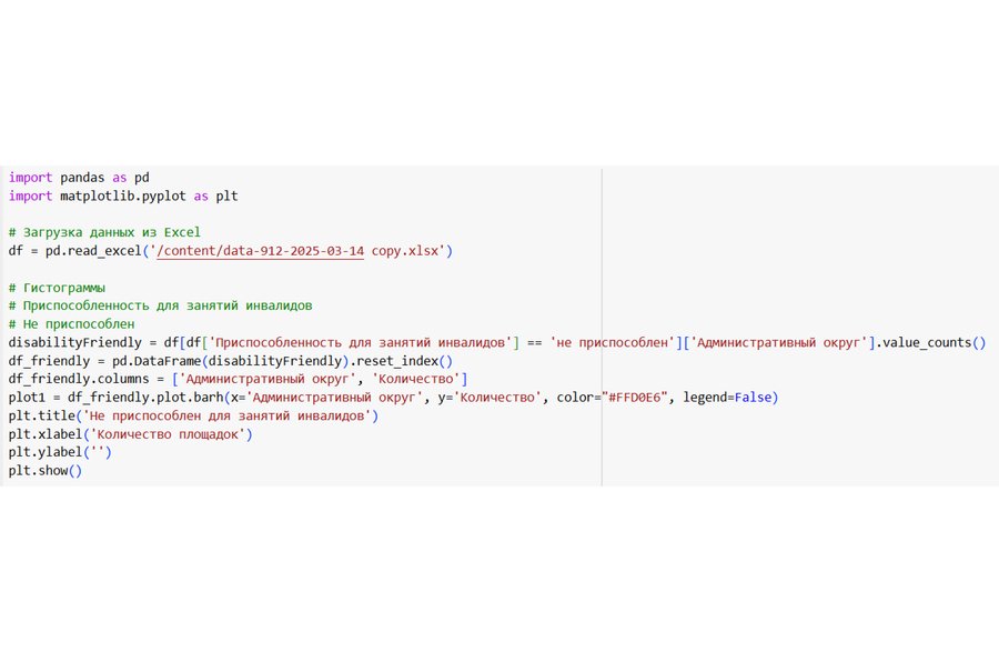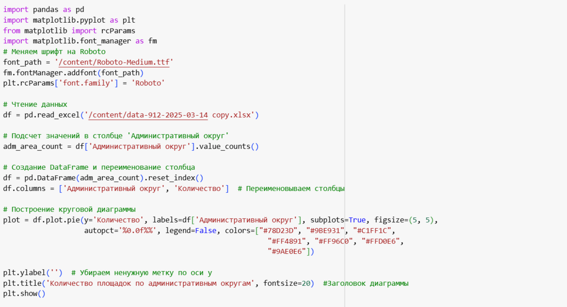 Для изучения статистики я использовала следующие ресурсы: 1. http://data.mos.ru/ — портал открытых данных Правительства Москвы; 2. https://data.mos.ru/opendata/912 — статистика по паркам для организации пикников; 3. https://huggingface.co/spaces/google/sdxl — Fast Stable Diffusion XL on TPU v5e для генерации изображений; 4. https://chataibot.ru/ — генерации отдельных строчек кода; 5. https://www.iloveimg.com/ru/upscale-image — для улучшения качества сгенерированных картинок.