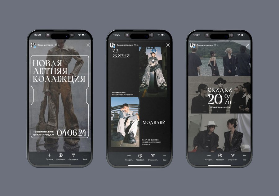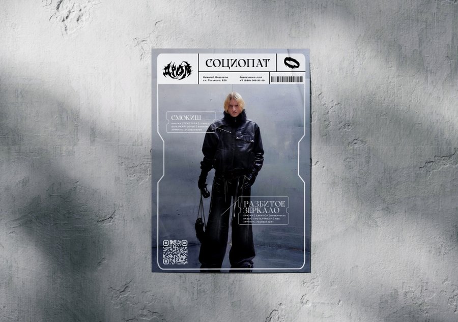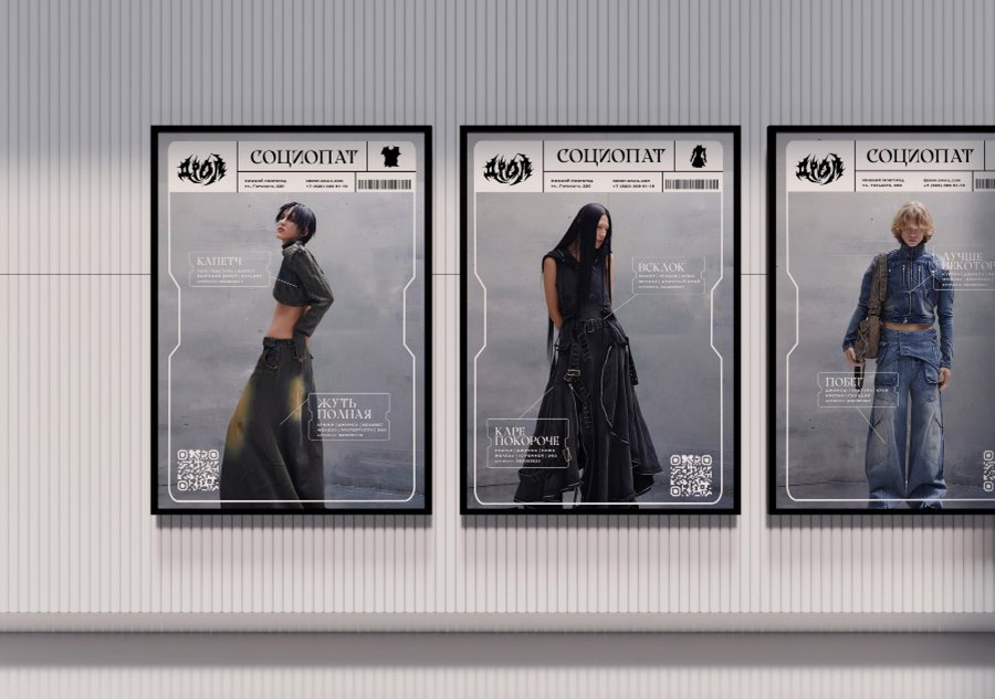 Для плакатов были сгенерировны разные вариации фотографий студийной съемки для рекламы одежды с помощью нейросети Ideogram.ai. Логотип и надписи добавлены вручную.