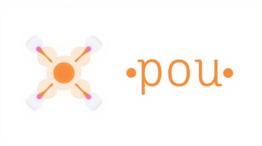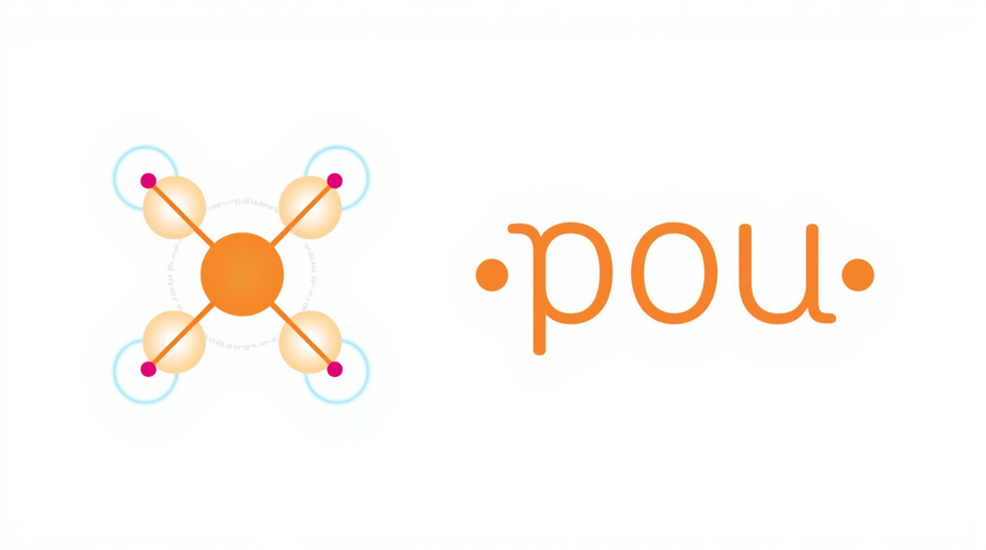 prompt: composition of a logo with type for a drone company. On the left is a logo consisting of a large orange circle in the middle and four small circles on each edge, with bright pink and light blue balls connected in one shape, rounded shapes and minimalism, and radial gradients. on the right there is an orange inscription with alternately written letters «p», «o» and «u» with a dot above the last letter, a rounded bold grotesque futuristic font, a bright white color on the background. vector super simple minimalistic modern logo