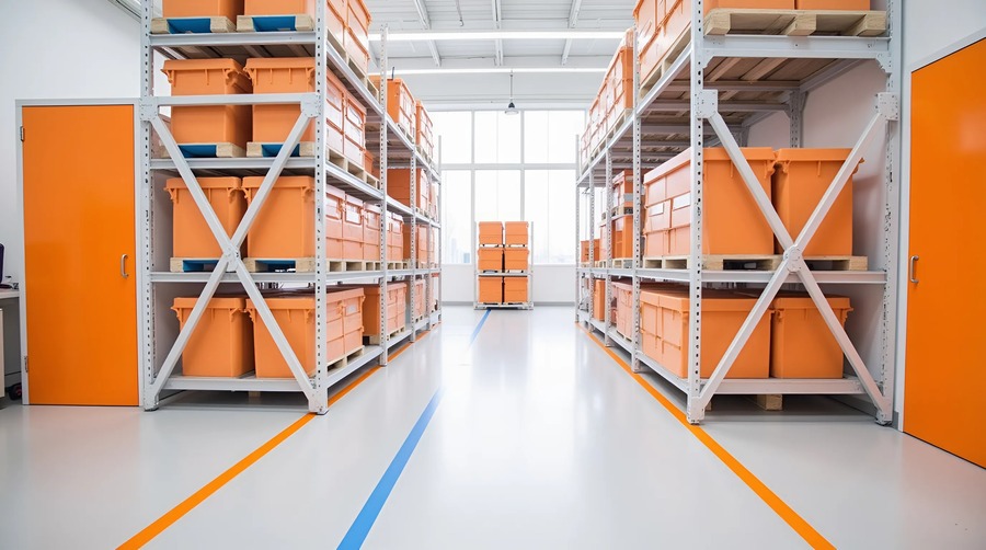 Я сгенерировал светлые и просторные складские помещения с цветами из палитры, также на них видна навигация из линий.