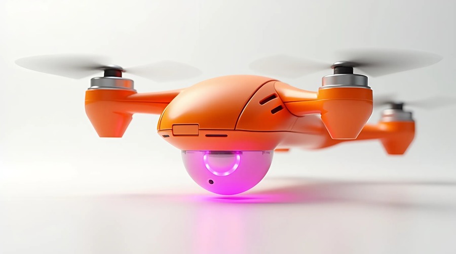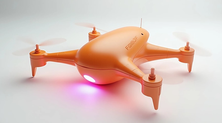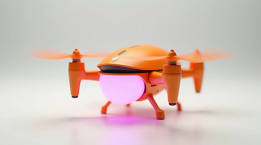 В качестве продукта я сгенерировал футуристичных ярко-оранжевых дронов с лампочками снизу.