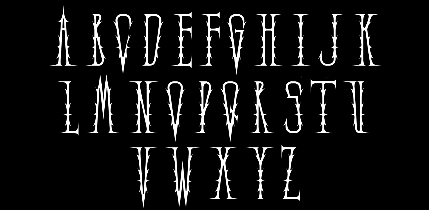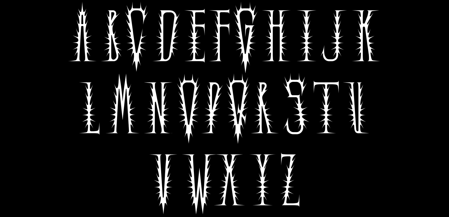 во втором начертании шрифт обрастает большим количеством острых иголок, распространяющихся все шире.
