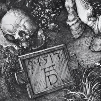 Важно обратить внимание на дорогу. Слева череп — символ смерти, посередине ползет ящерка, холоднокровные животные раньше считались символом нечистого, поэтому можно сказать, что она — символ дьявола. Также на дороге рядом с черепом находится табличка с подписью дюрера, она может быть намёком на человека, которого запомнят, то есть на рыцаря.