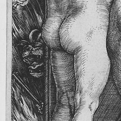 На этой гравюре изображены четыре обнаженные женщины. Они стоят в кругу. Композиционно фигуры на переднем плане связаны с фигурами трёх граций, а четвертая с Венерой. Однако на полу лежат череп и кости и через открытую дверь слева виднеется голова дьявола.