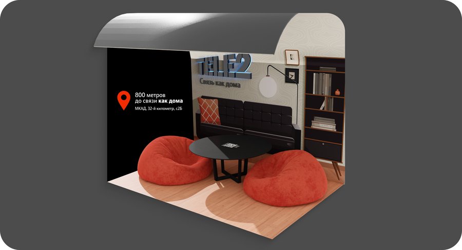 Эмбиент-реклама Tele2 «Связь как дома» создаст уютную атмосферу и обеспечит хорошую связь для звонка близким.
