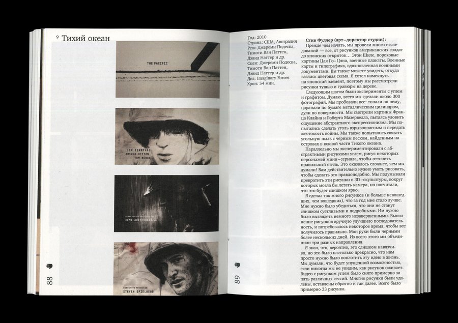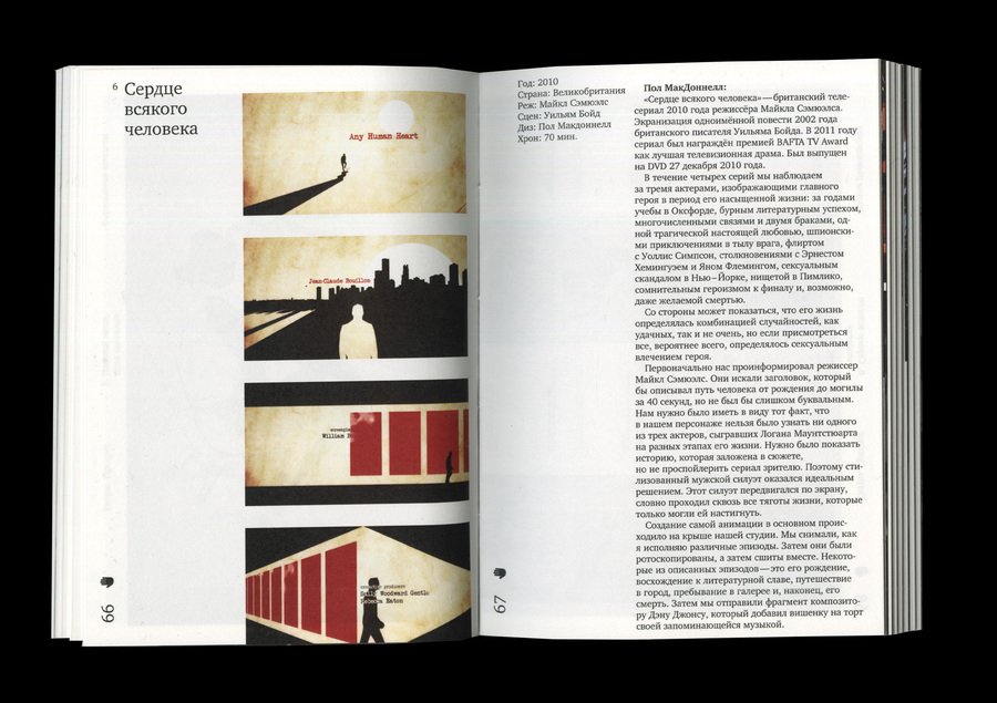 Каталог включает в себя 16 фильмов, расположенных в алфавитном порядке, которые отличаются по техникам производства. Они маркируются пиктограммами и являются элементом навигации в книге: