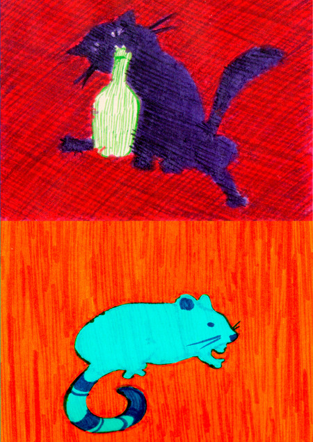 Яркие, сочные цвета, незамысловатые, забавные сюжеты и разнообразные текстуры, которые так и хочется потрогать руками! «Туда-сюда» — это серия плакатов, основой которых стали интересные комбинации работ, выполненных в технике детских фломастеров.