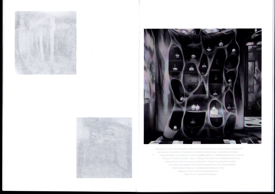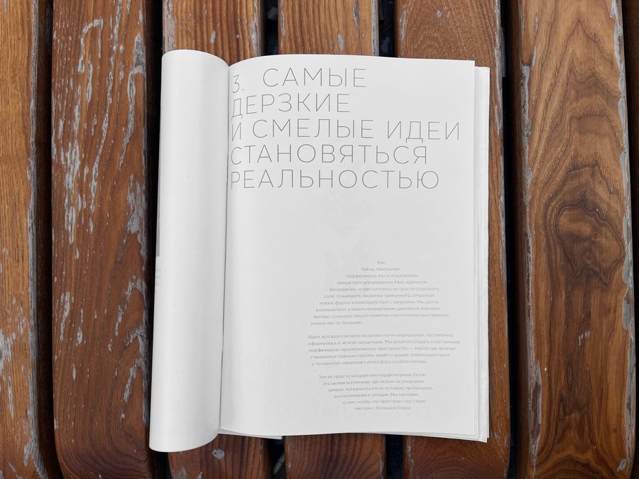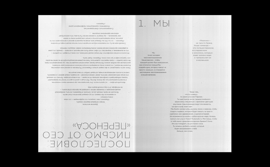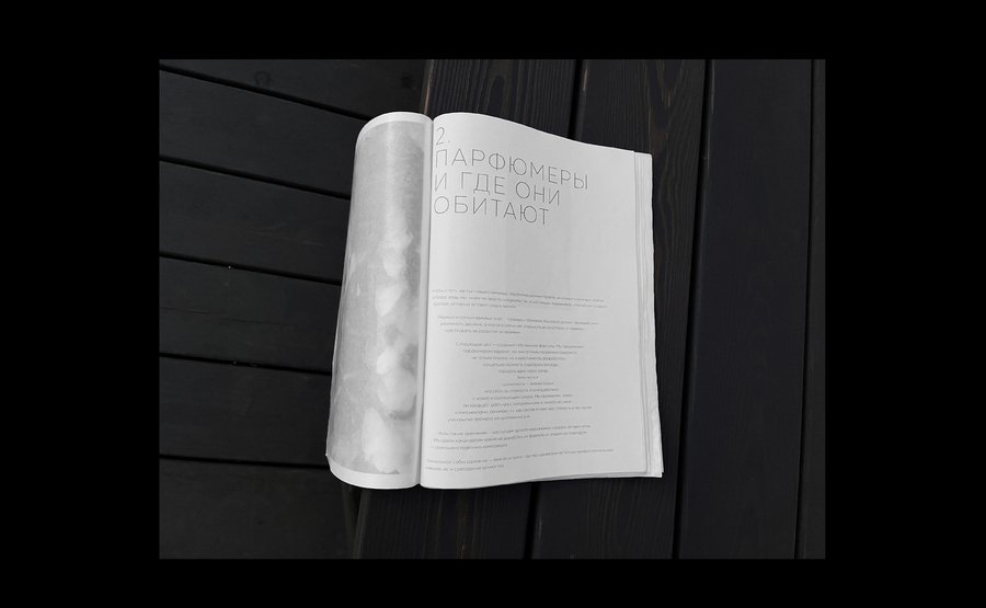 Благодаря кальке, проложенной через каждый печатный лист, книжка передаёт атмосферу таинства и волшебства. Именно этого настроения и добивались создатели «Переноса», создавая своё пространство и отсылаясь к визуализации запахов в помещении.
