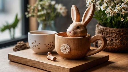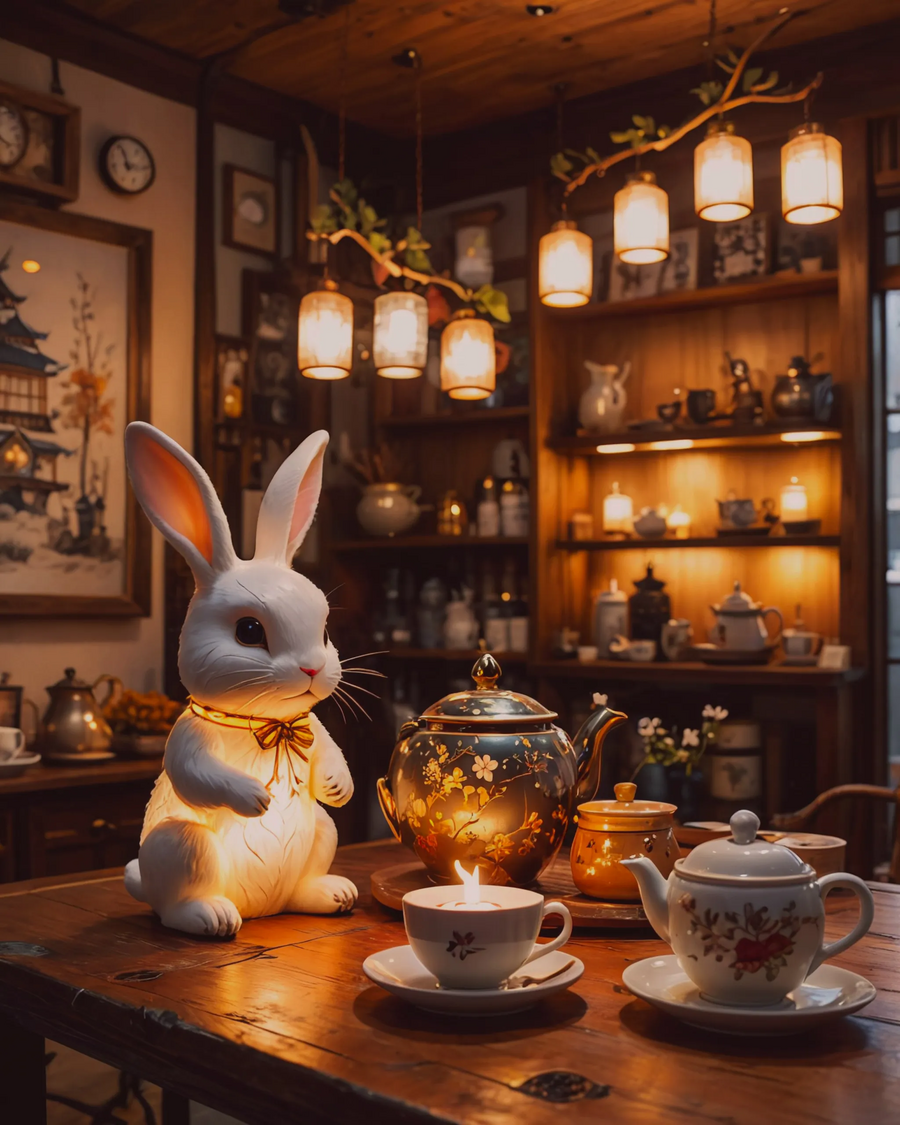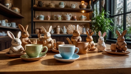 Изображения созданы в Ideogram и Leonardo Diffusion XL. Промт также сгенерирован с помощью GPT чата по запросу: напиши промт на английском языке для генерации фотографий деревянный фигурок и подставок для кружек с зайчиками и кроликами в чайном кафе. Promt: Create a series of photographs showcasing wooden figurines and coasters featuring cute bunnies and rabbits, set in a cozy tea café atmosphere. The images should highlight the intricate details of the wooden designs, with soft lighting that captures the warm, inviting ambiance of the café. Include scenes of the figurines placed on tables along with steaming cups of tea, surrounded by rustic décor and greenery, emphasizing the charm of a peaceful tea-drinking experience.