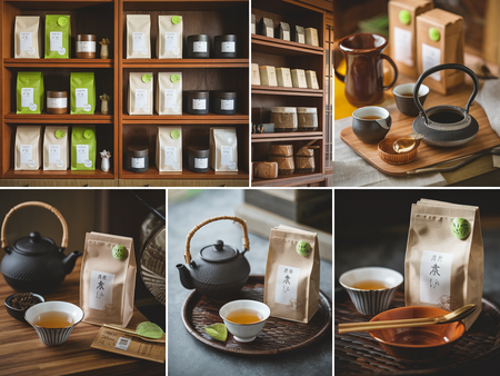 Чайный сервиз сгенерирован в Ideogram и Leonardo с помощью промта по запросу: напиши промт на английском языке для генерации фотографий пакетиков и баночек разного вида чая, среди пакетов и полочек с чаем стоят приспособления для заварки чая, а так же традиционные японские чашечки для питья чая. Promt: Create a series of photographs featuring various tea bags and jars of different types of tea arranged among shelves filled with tea products. Include tea brewing accessories and traditional Japanese tea cups in the composition, showcasing an inviting and serene tea-drinking atmosphere. The lighting should be soft and warm, highlighting the textures and colors of the tea packaging and the elegance of the tea cups.