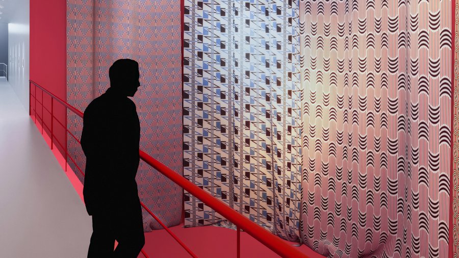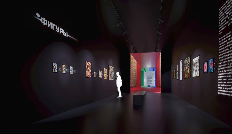 Самой эффектной частью выставки является красный зал «Новый узор», на шестнадцатиметровых стенах которого висят полотна ткани с орнаментами авторства самой Варвары Степановой.
