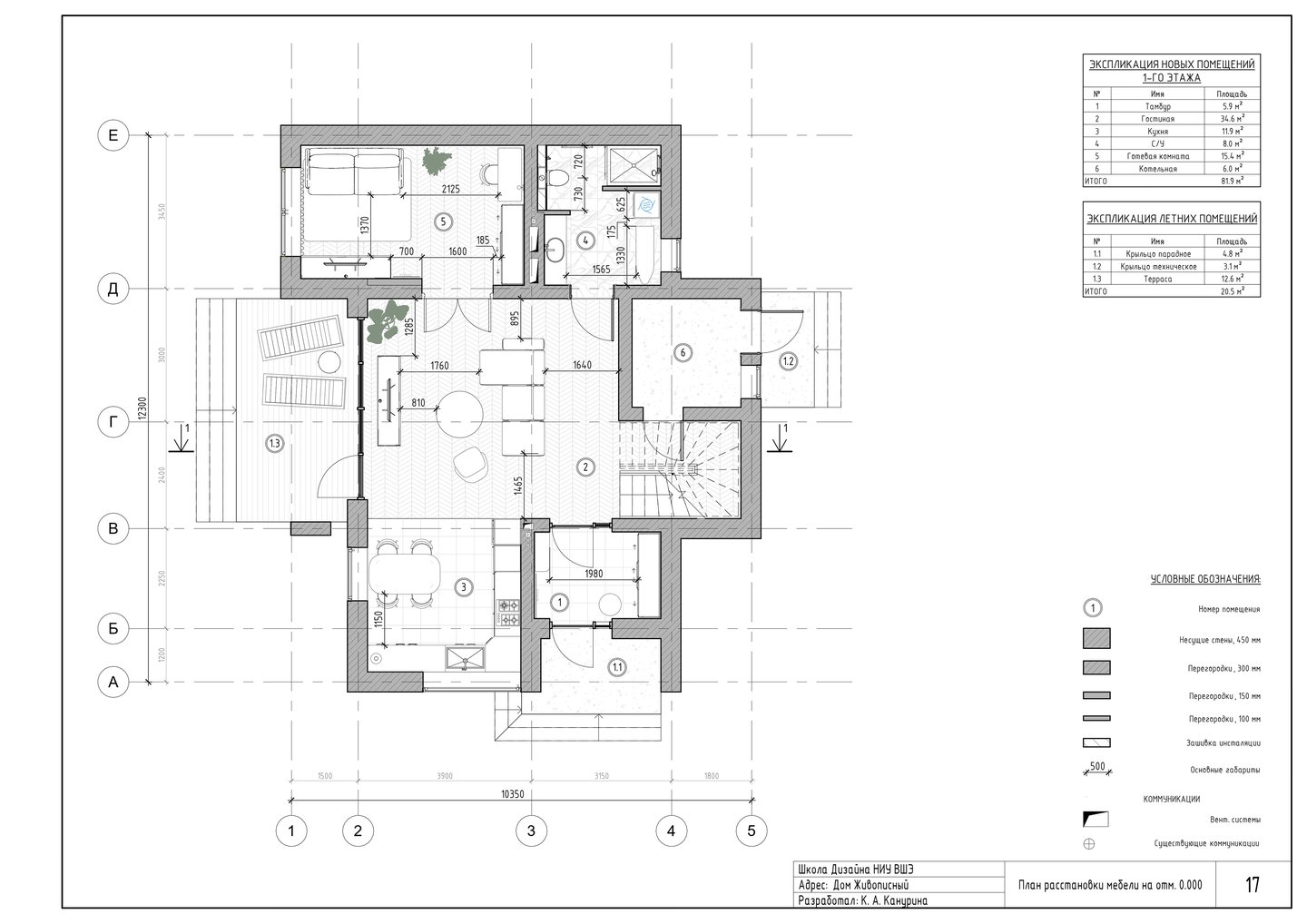 Летние помещения представлены террасой (1.3) и двумя крыльцами: парадным (1.1) и техническим (1.2), через второе можно попасть в помещение котельной. Общая площадь летних помещений без коэффициентов: 20,5 м².