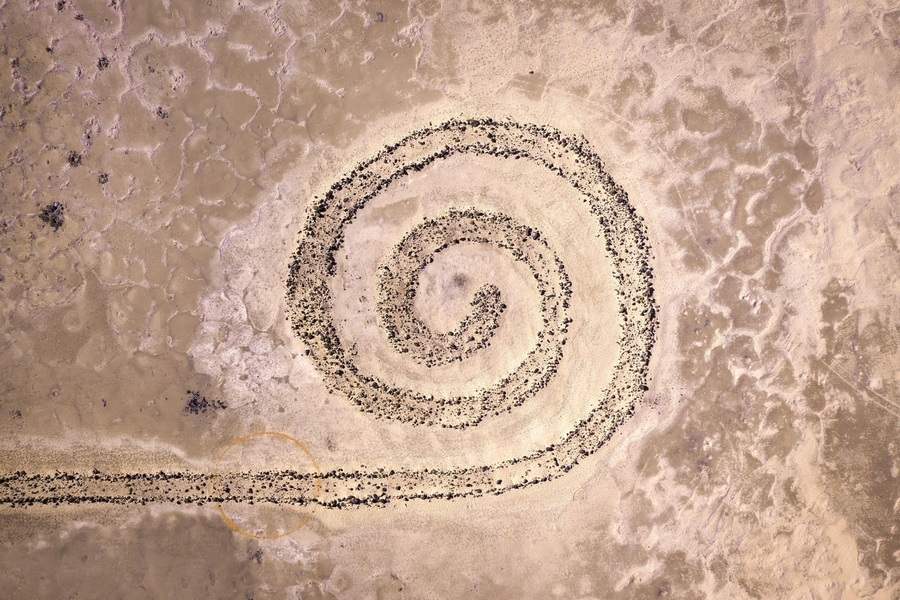 Работа Роберта Смитсона, «Спиральная дамба» — классический пример лэнд-арта. Это произведение невозможно оценить исключительно с точки зрения формальных качеств скульптуры в традиционном понимании. Оно существует во взаимодействии с ландшафтом, природными процессами, временем. Это идеальная иллюстрация концепции Краусс о «маркированных местах» и выходе скульптуры в «расширенное поле», далеко за пределы гринберговской «чистоты» и автономии.