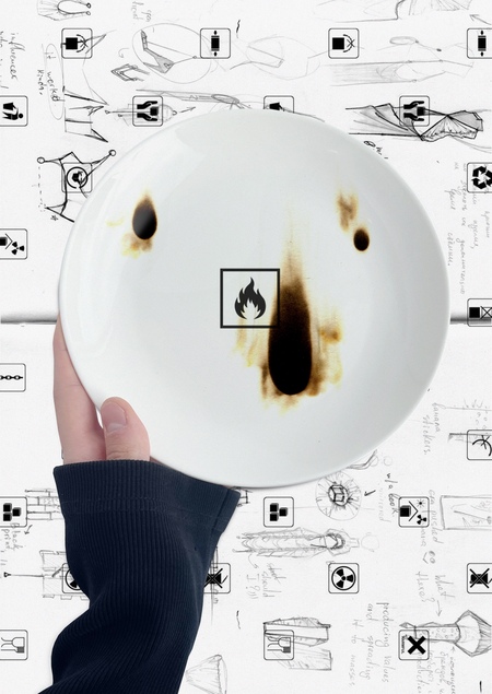 Проект «Manipulation signs» — это серия принтов в технике горячей деколи, в которых действия, проведённые с тарелками, либо следуют логике указанных знаков, либо противоречат ей.