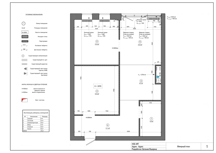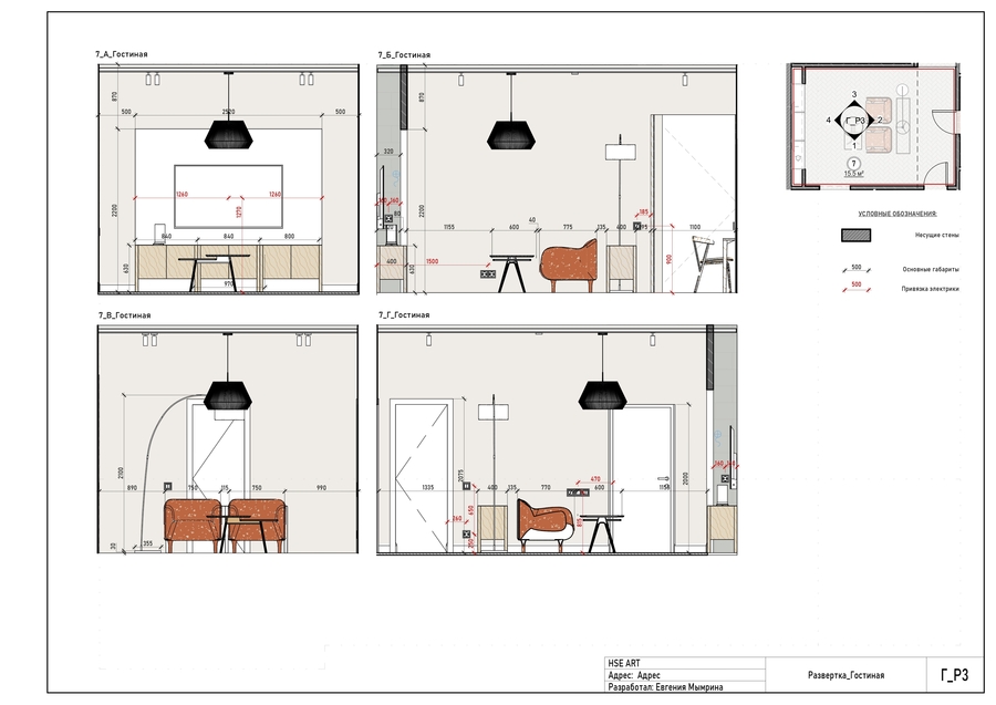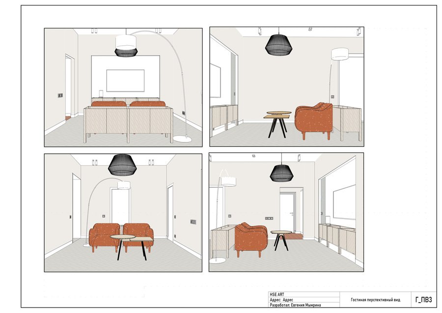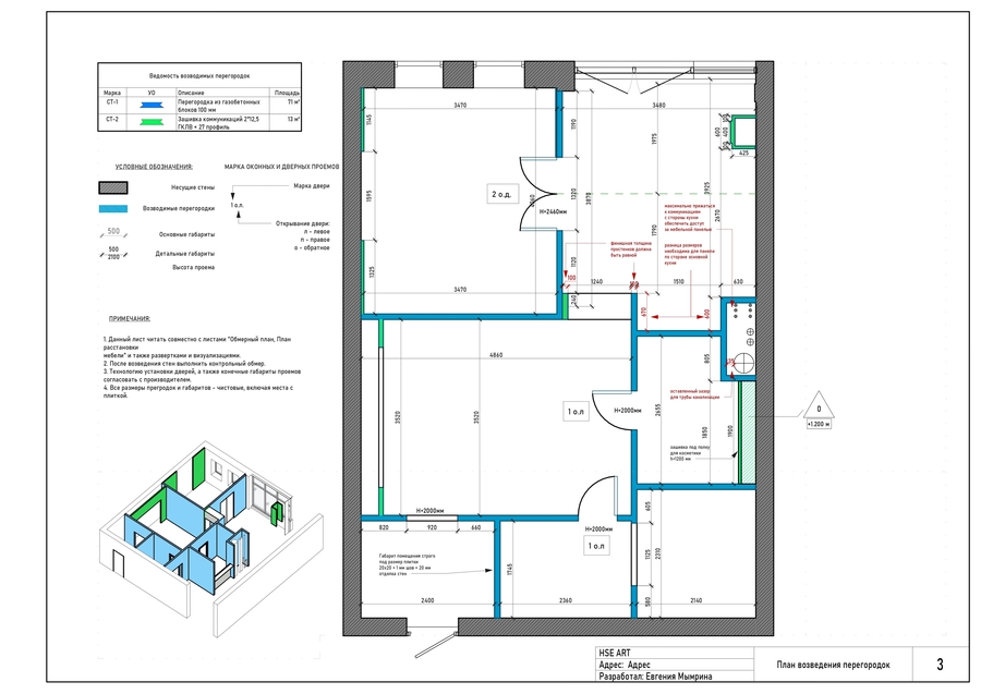 В альбом чертежей включены стадии проекта от обмерного плана, до 3D схем трех помещений: