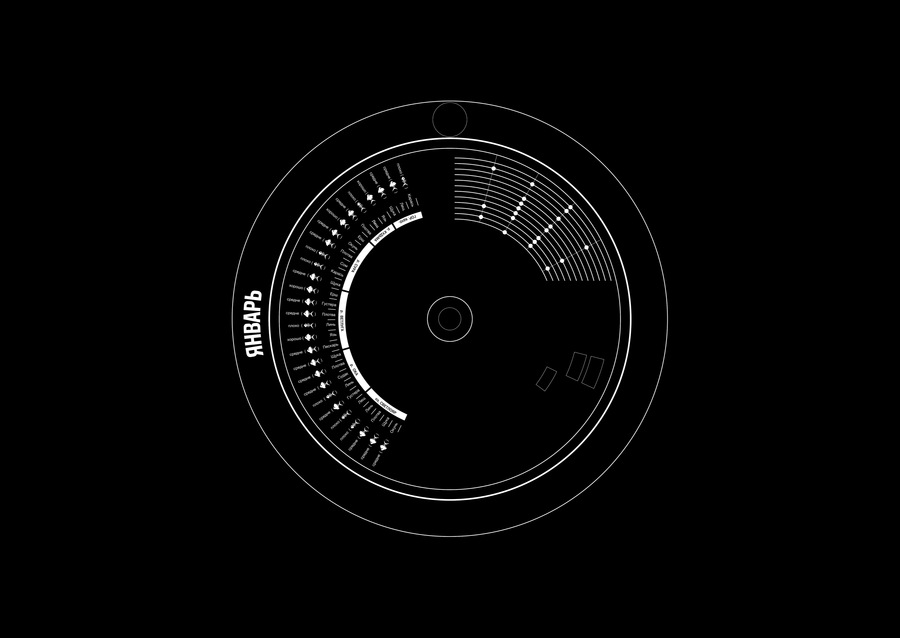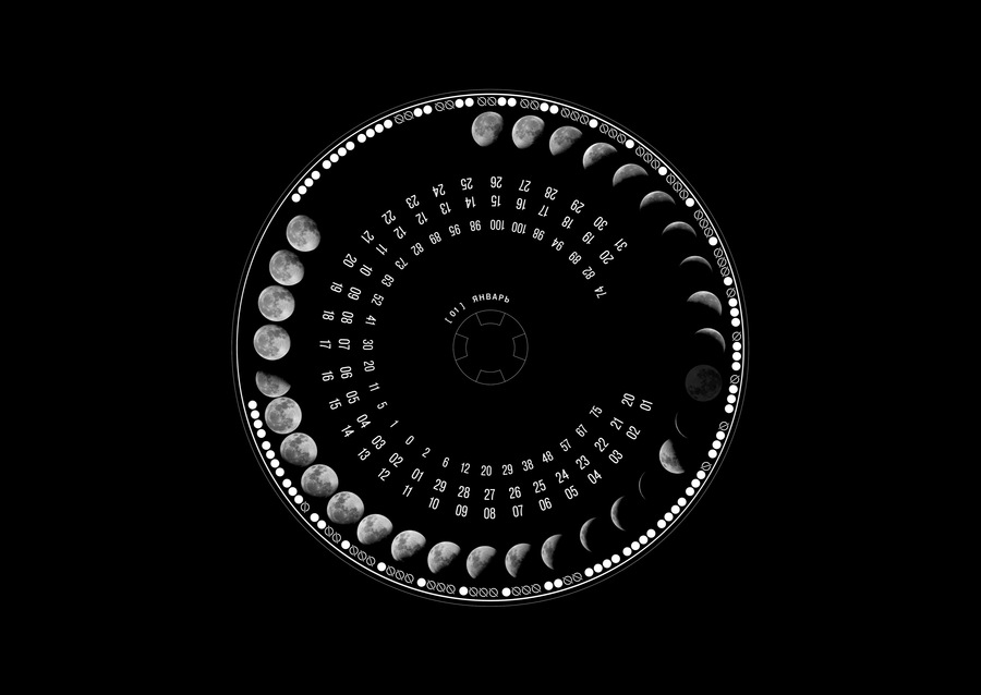 Конструкция: Круглый календарь по месяцам со сменными пластинами (1 месяц — 3 листа)