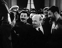 Впервые образ Сталина появился в фильме «Ленин в Октябре» Михаила Ромма, вышедшем в 1937 году. Сталин был представлен в образе второстепенного персонажа: он не произносил реплик и лишь молча стоял позади Ленина во время его важных выступлений.
