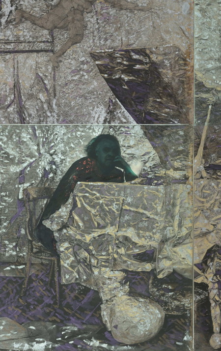 Пианист, 1993 г. Холст, масло, акрил, фотография. 180×140 см