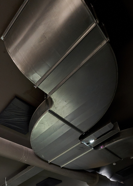 Алюминиевые воздуховоды, проектор, видео, генеративный звук. Размеры варьируются.